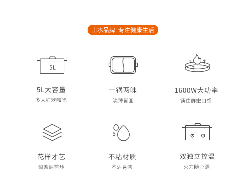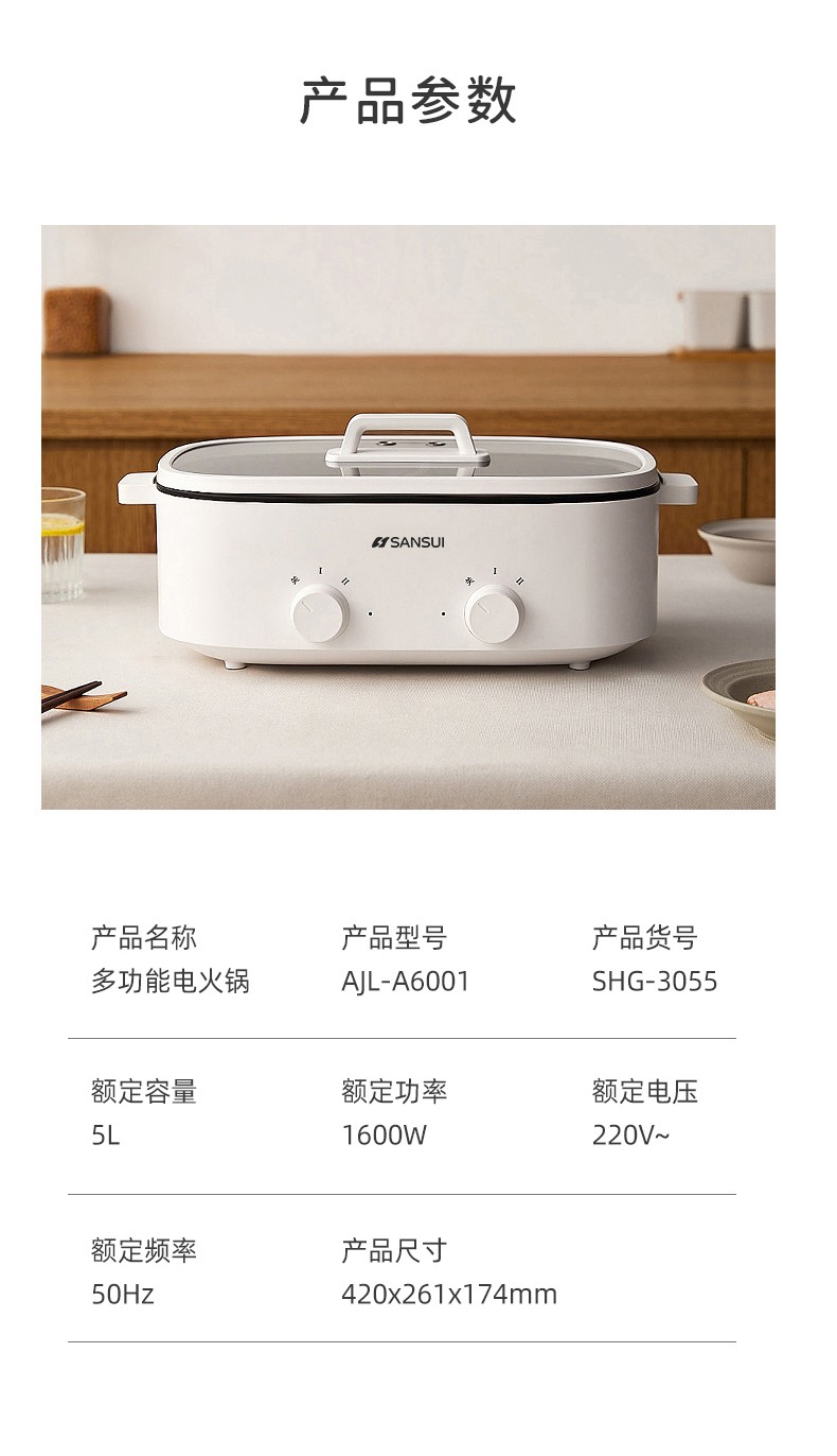 SANSUI山水多功能鸳鸯电火锅SHG-3055/AJL-A600