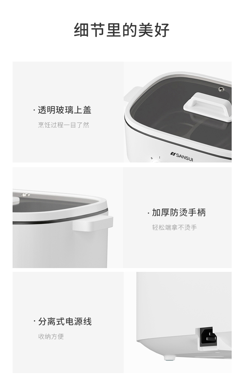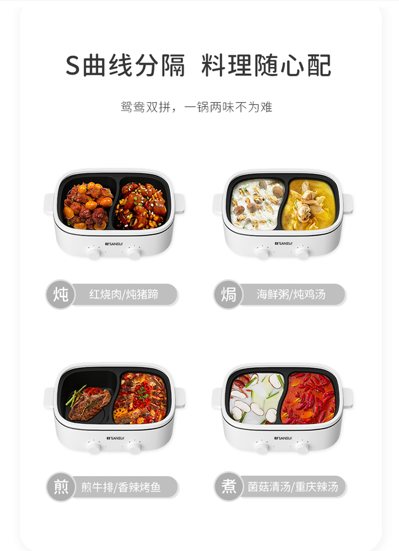 首页 > 家电系列 > SANSUI山水多功能鸳鸯电火锅SHG-3055/AJL-A600