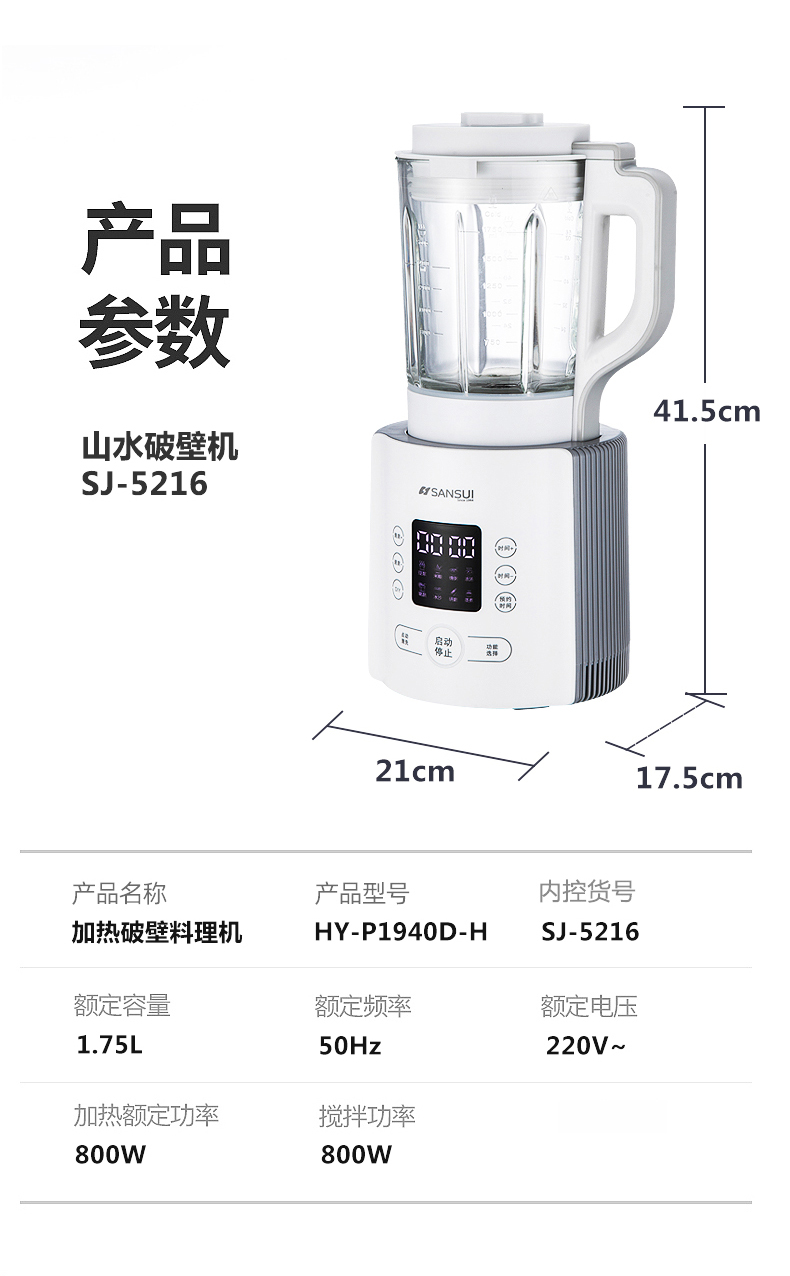 SANSUI山水智能加热破壁料理机SJ-5216/HY-P1904D-H