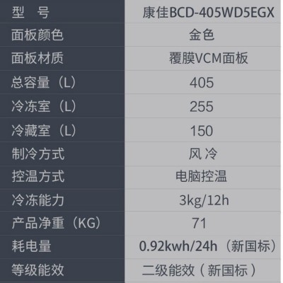 首页 > 家电系列 > 康佳405升对开门冰箱风冷无霜隐藏式把手BCD-405WD5EGX