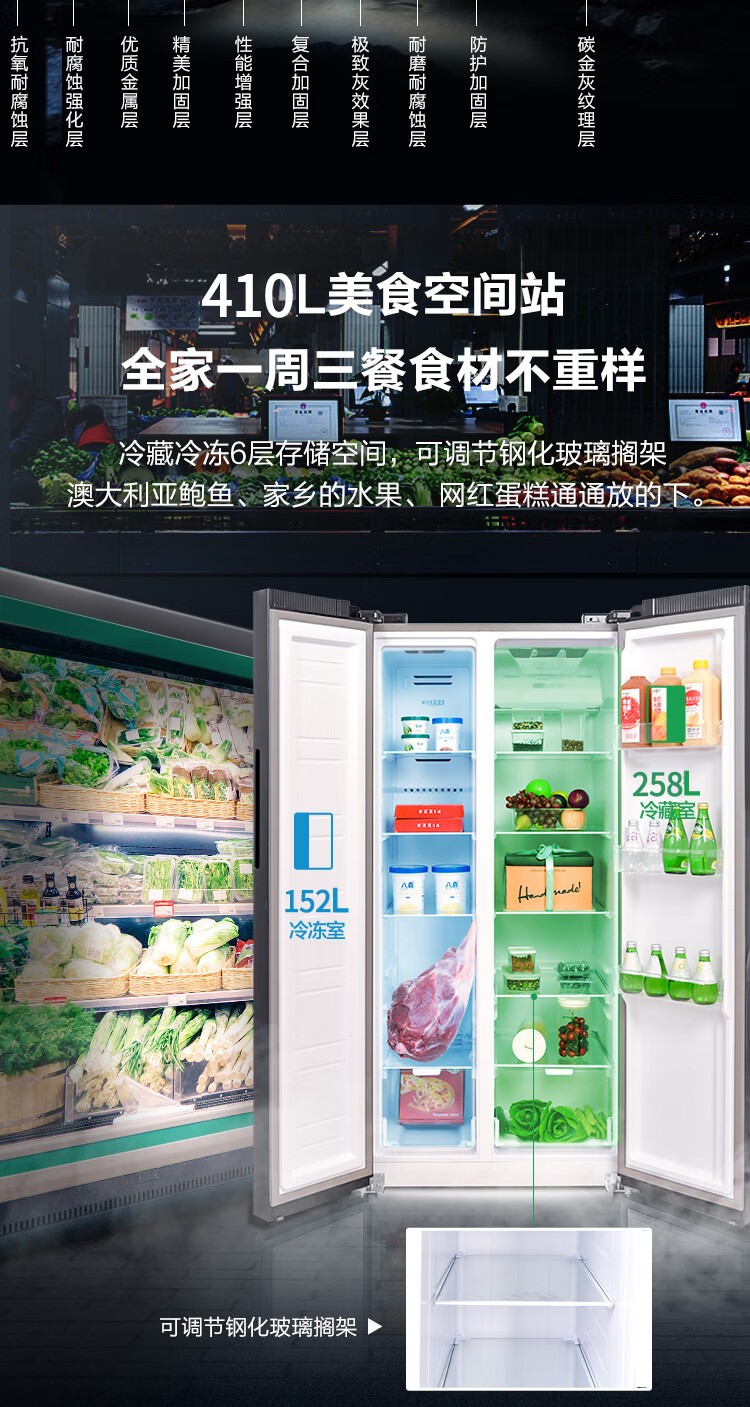 康佳410升风冷无霜对开门冰箱BCD-410WD5EGQ