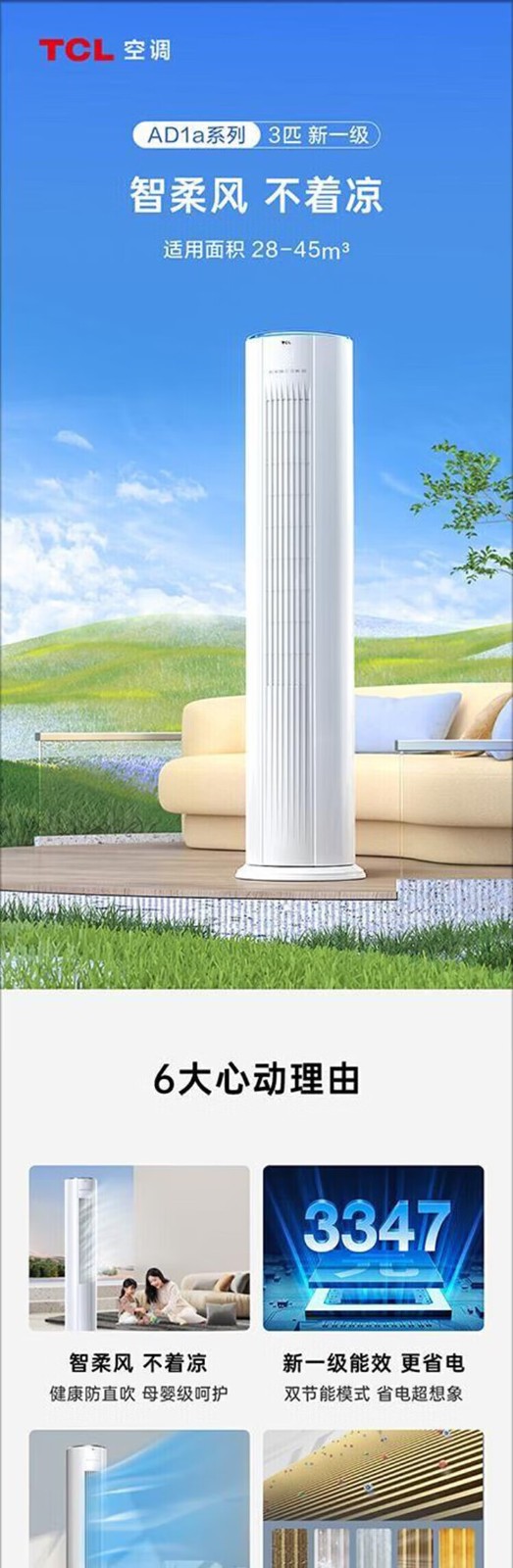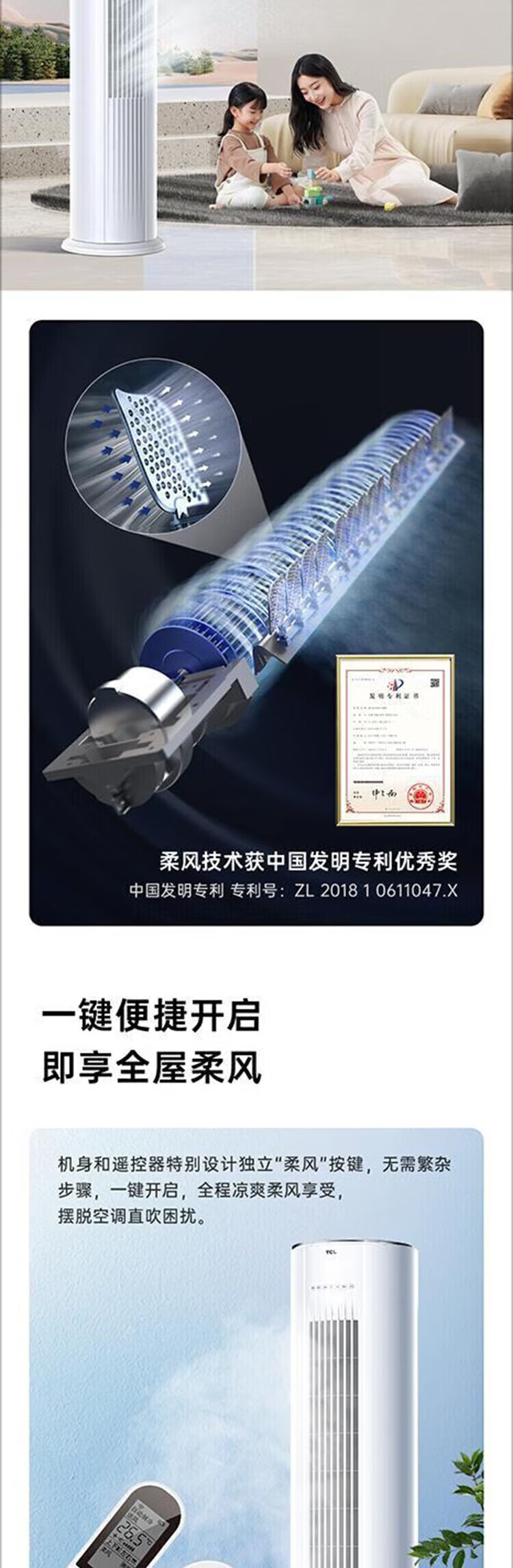 首页 > 家电系列 > TCL空调 大3匹 新一能效级 智柔风 圆柱立柜式空调 KFR-72LW/AD1a+B1