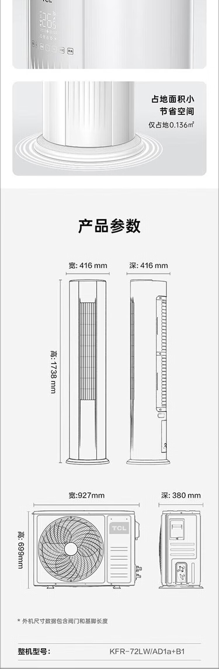 TCL空调 大3匹 新一能效级 智柔风 圆柱立柜式空调 KFR-72LW/AD1a+B1