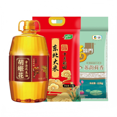 胡姬花/十月稻田/福临门苏韵荷香土榨花生油东北米组合4L+5kg