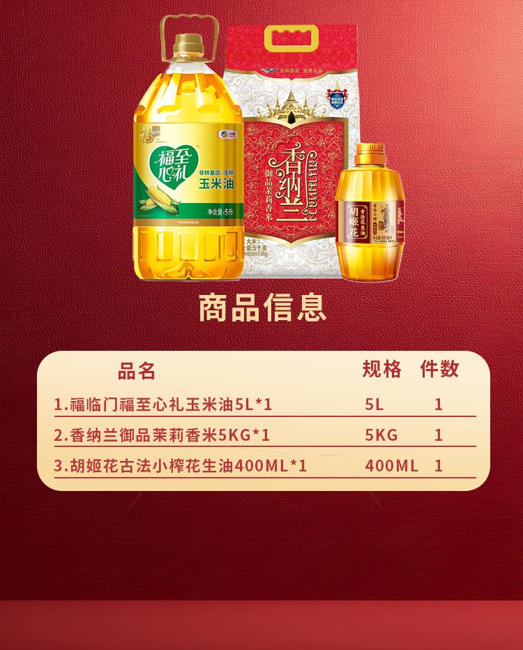 首页 > 粮油系列 > 金龙鱼/香纳兰/胡姬花特选稻米油茉莉香米珍珠米小榨花生油组合 4.4L+5.5kg