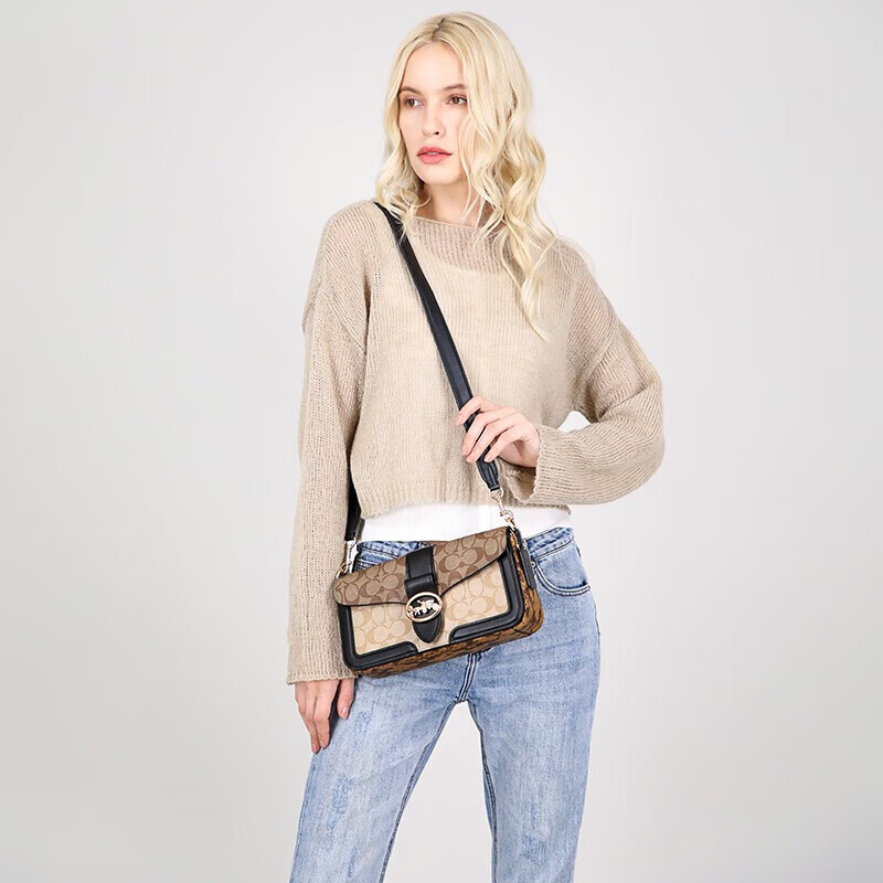 COACH/蔻驰 Georgie 27号 #5509-IMRKY 奥莱乔治酒神包/卡其色配黑色
