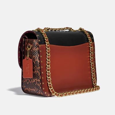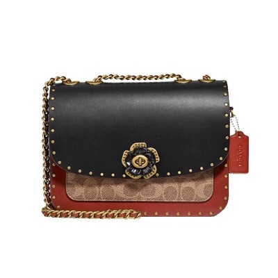 COACH 蔻驰女包 MADISON系列涂层帆布配皮山茶花铆钉单肩斜挎包 C3758/红棕色配棕色老花
