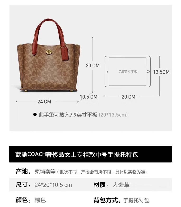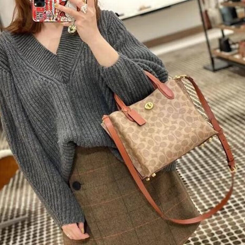 首页 > 轻奢系列 > COACH/蔻驰 女士经典Willow 24 托特包小号斜挎包手提包女包 C8562-B4NQ4/红棕色配棕色老花