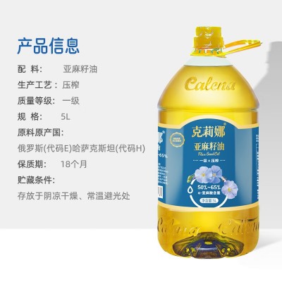 克莉娜亚麻籽油5L PET瓶装
