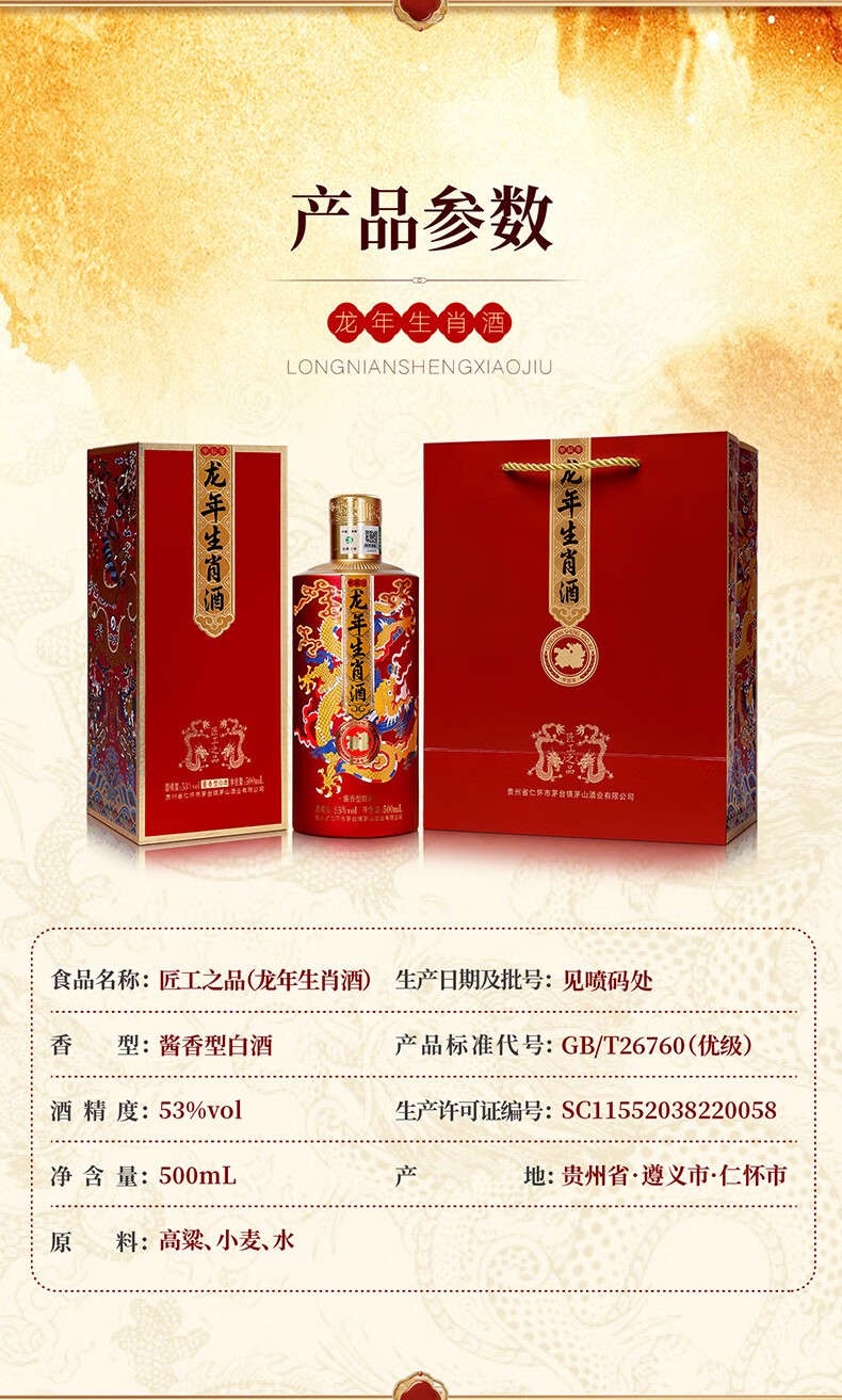 匠工之品龙年生肖酒(福运连连)53°vol/500ML*6
