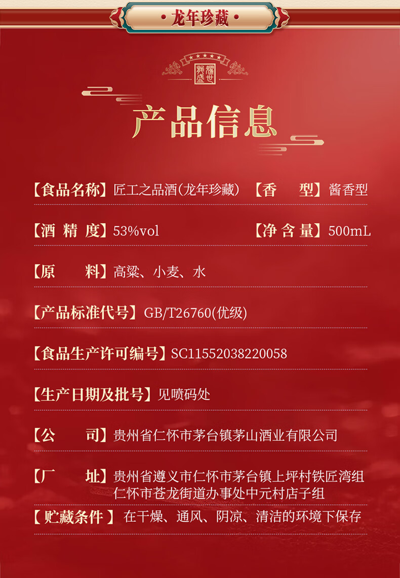 匠工之品龙年珍藏酒53°vol/500ML*6