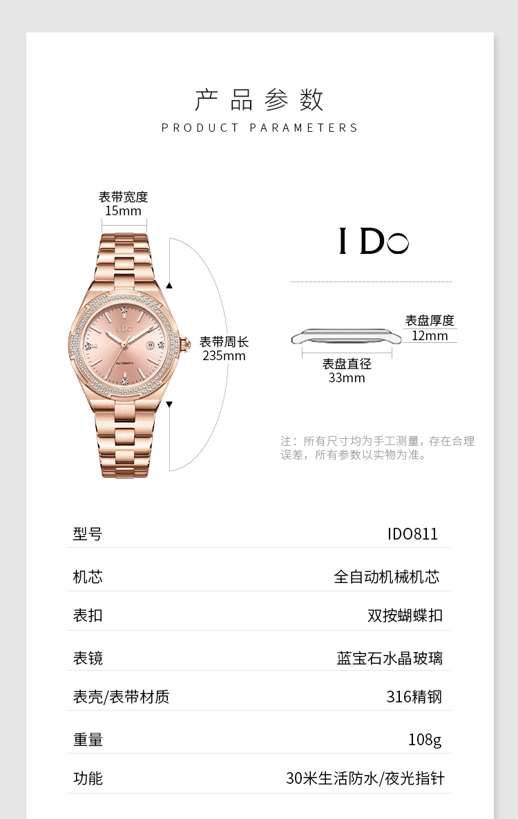 IDO(悦奢)机械机芯腕表811M-RG04/玫瑰金