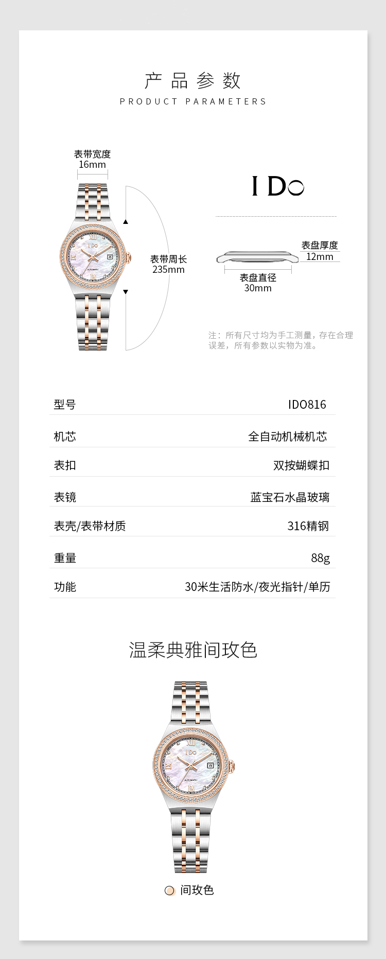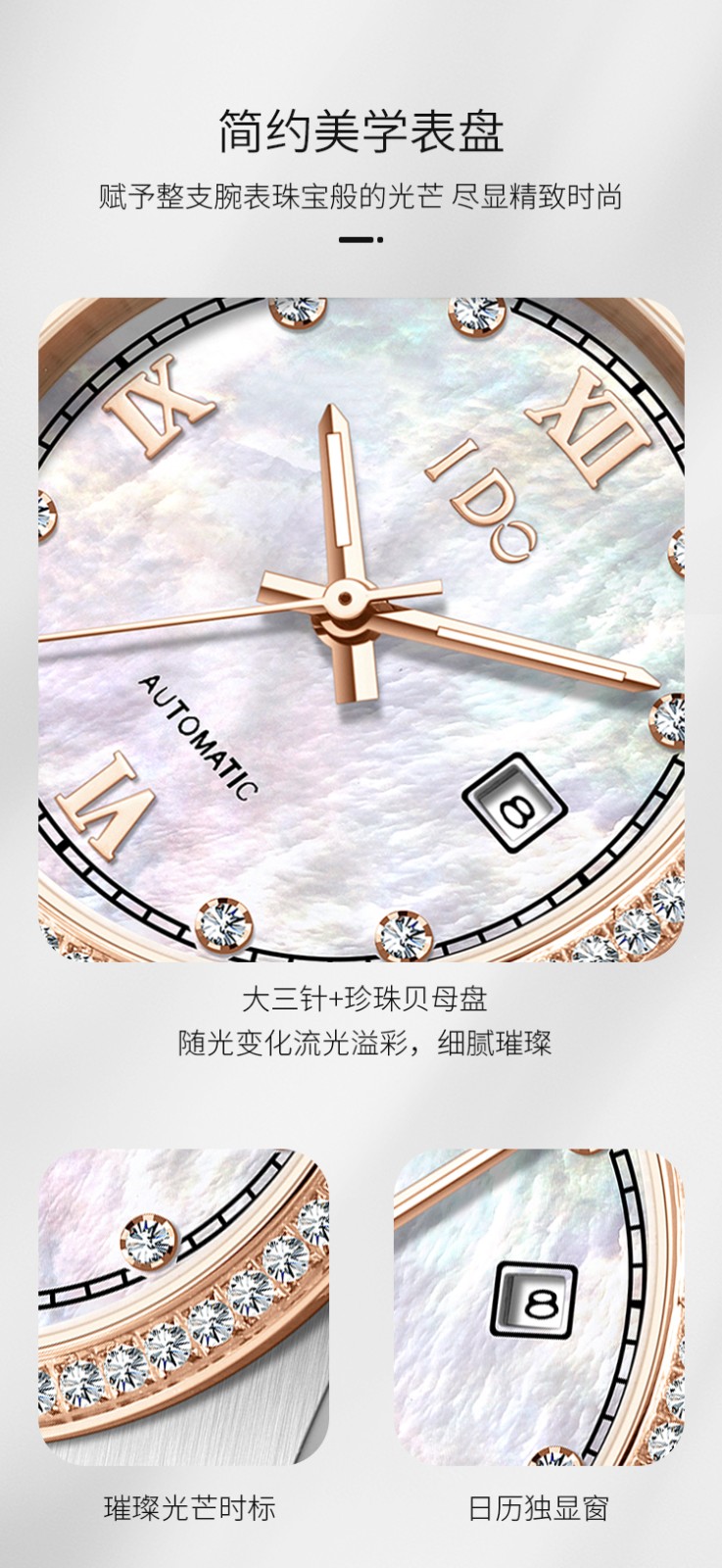 IDO(魅丽)机械机芯腕表816L-SRG01/间玫色
